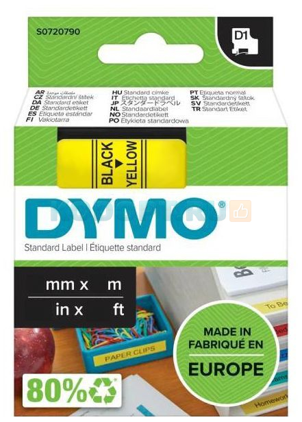 Картридж с виниловой лентой D1 для принтеров DYMO Label Manager, пластик, черный шрифт, 6 мм х 7 м Желтый, (5 шт/уп) (DYMO43618)