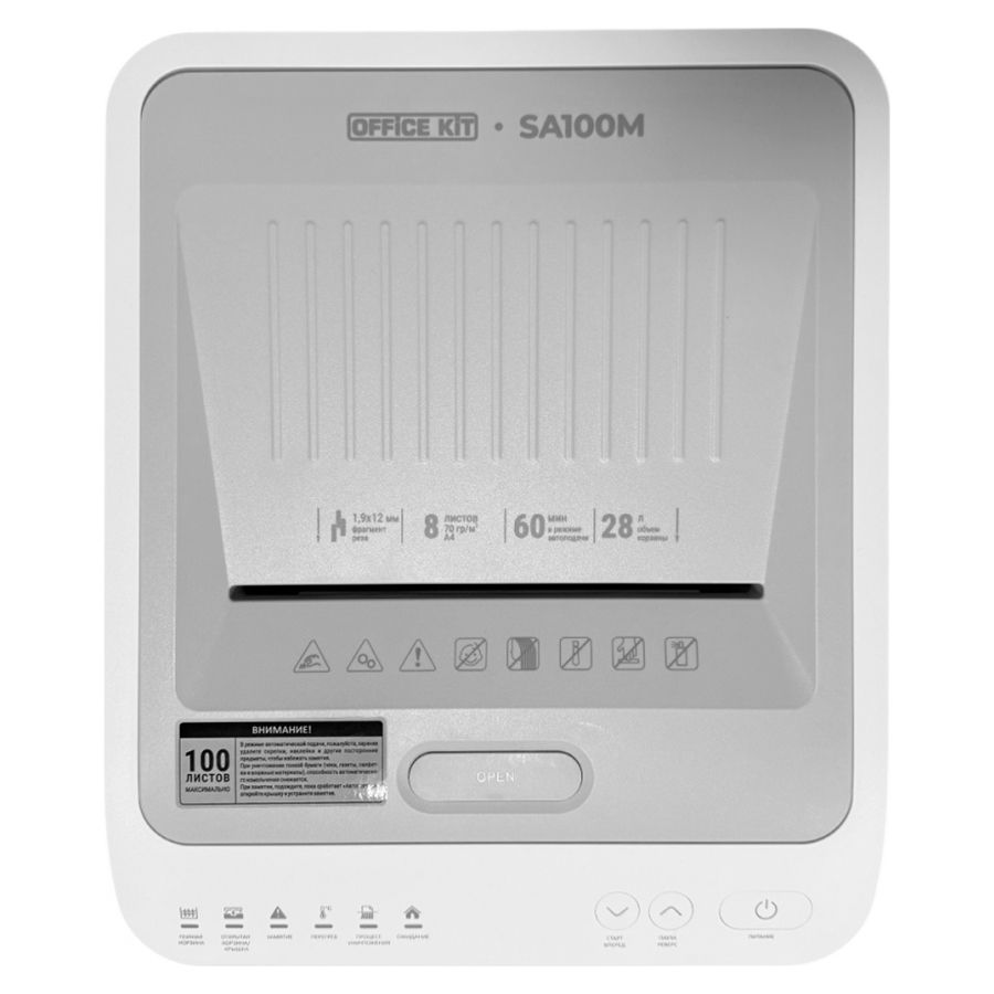 Шредер с автоподачей Office Kit SA100M, P-5, 1,9x12, 100 листов, 28л., белый