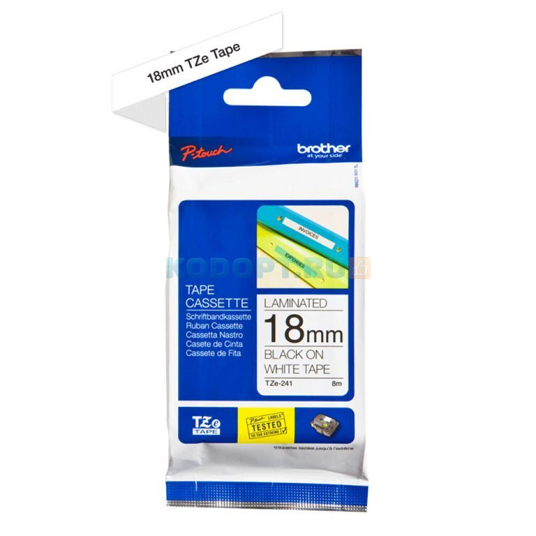 Плёнка для наклеек Brother TZE-241 чёрный шрифт на белой основе, 18мм*8м