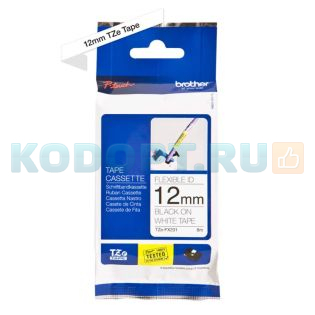 Плёнка для наклеек эластичная Brother TZE-FX231 чёрный шрифт на белой основе, 12мм*8м