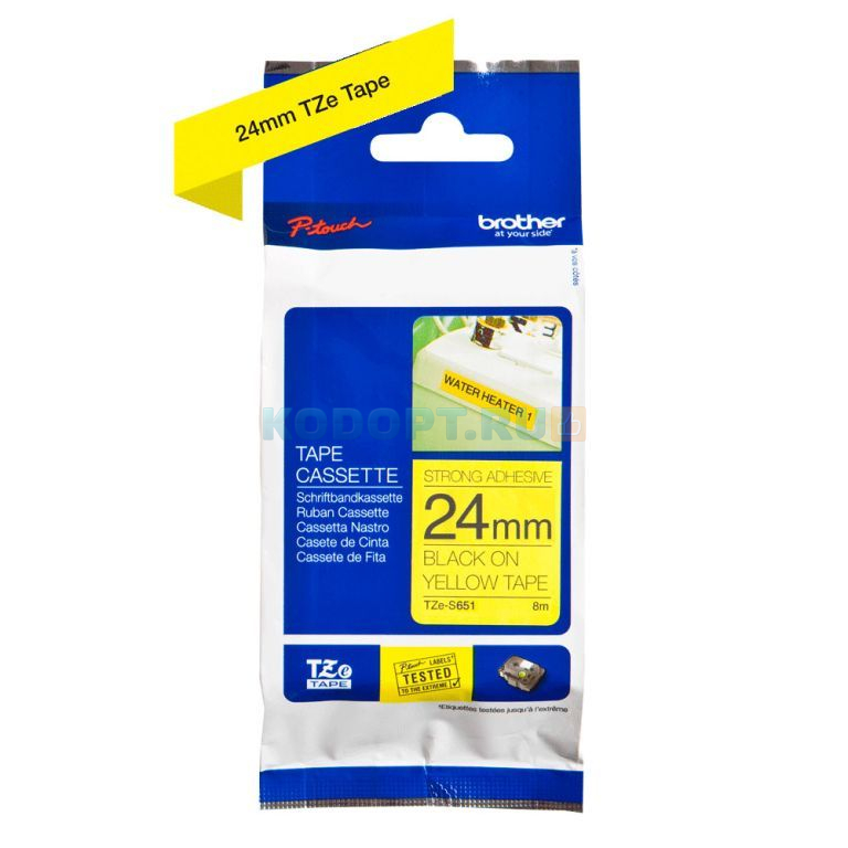 Плёнка повышенной адгезии для наклеек Brother TZES-651 чёрный шрифт на жёлтой основе, 24мм*8м