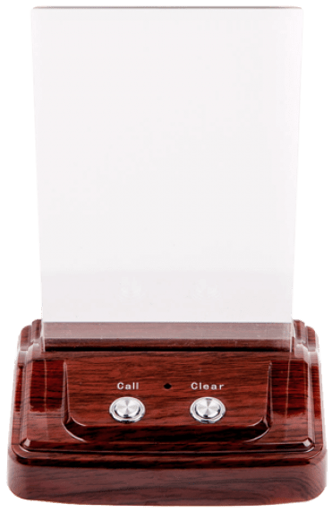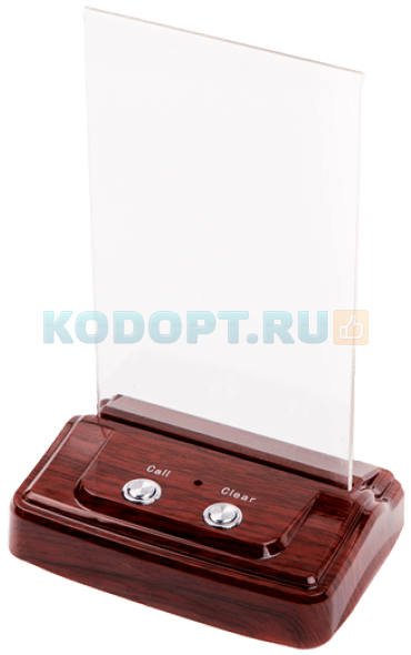 Функции: вызов, отмена вызова. Также в комплекте идет прозрачная вставка для меню (table-tent). - Стабильная связь с приемниками сигнала (пейджерами, табло)